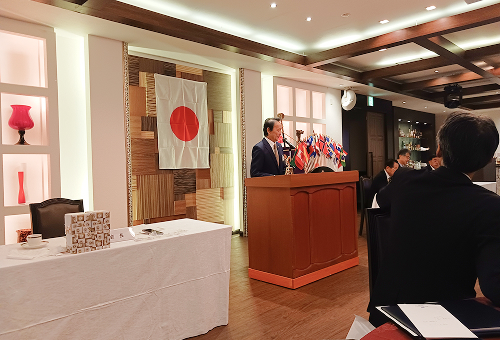 懇親会では高崎頼政太鼓の迫力ある演出に誰もが言葉を発せず見入っていました。